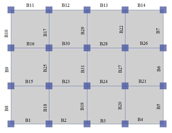 Figure4.Theplanoftheexistingbuildingwiththenamed beammembers.