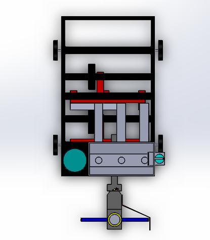 •A new L-shaped leg has been introduced, and it is positioned at the rear of the frame, as seen in the image below. toggled switch controls motor and L-shaped leg is attachedtoit.Thebladesofthemotorareactivatedwhen thetoggleswitchispressed,asindicatedintheimagebelow.