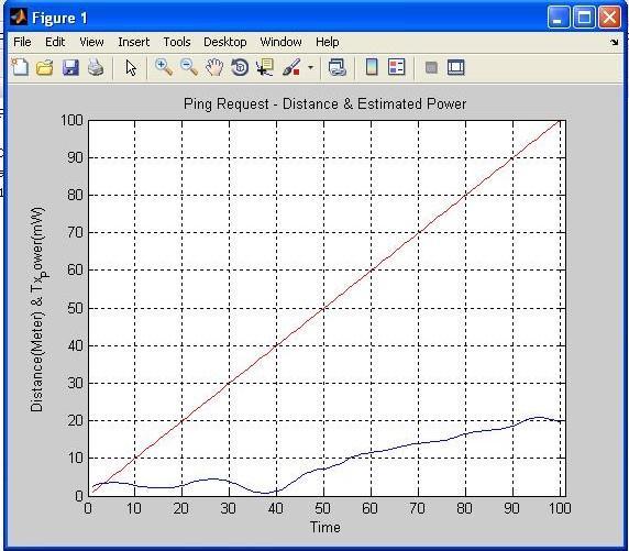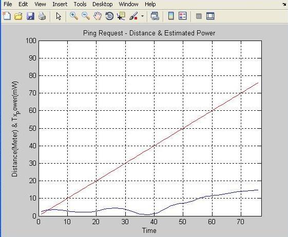 The above figure shows distance estimation with power,accesscontrollerstartssendingpingrequestwith0 mw power, at this power distance estimated by trained network is 0 meter at when time is 0 second. Access