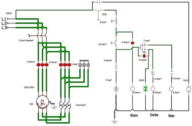 The motor terminals are connected in the star pattern initiallyreducesthelinevoltageby57.7%andthenthefull line voltage is applied in delta connection after the motor achieve 85% of the rated speed. The connection is shown inFig.5.
