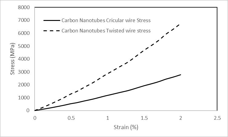 Figure 11:Stress-straincurveforthecarbonnanotubes forthecaseofcircularandtwistedwirestress