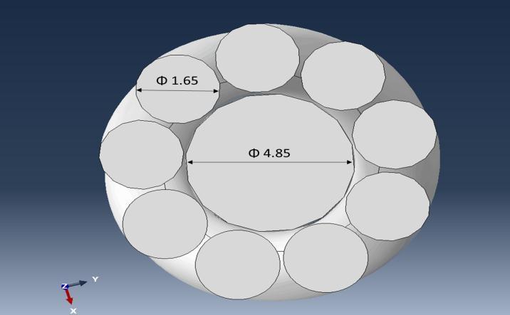 Figure 1 and figure 2 represent the outlook offering twisted wire to be used for finite element modeling simulation part a represents the complete structure of a twisted wire cable and Part B represents the crosssectionaldimensions.