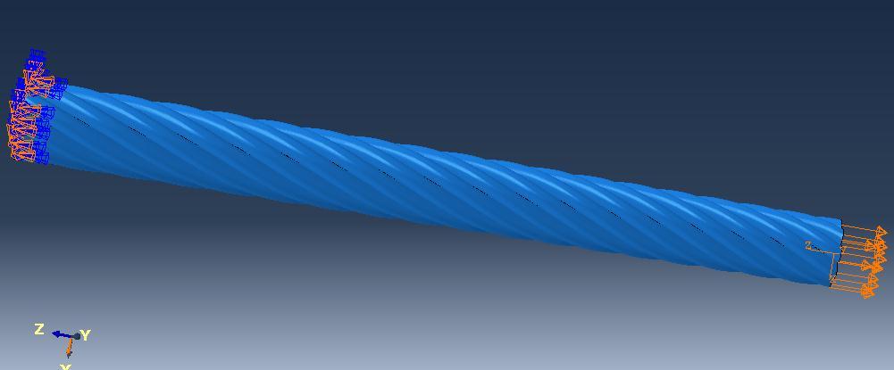 Figure 4 represents the 3-dimensional meshing of the twisted rope with general purpose linear brick element (C3D8R).