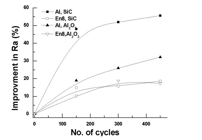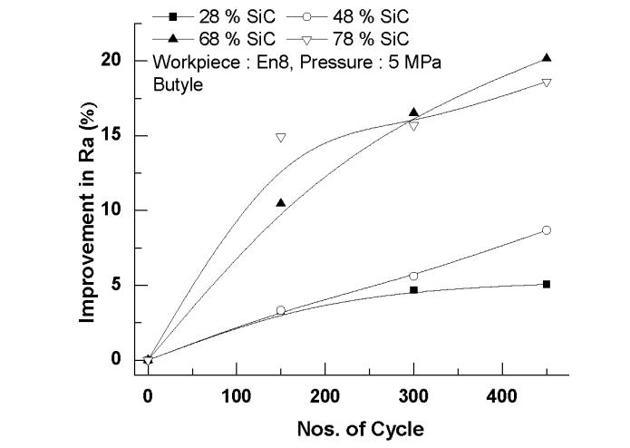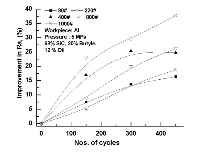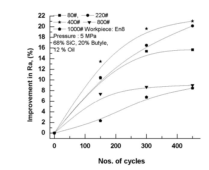 1. Initial Ra=1.24 micron on En8 for continuous finishingusing220,400,800and1000meshsizefor 450cycleswith5MPapressure.