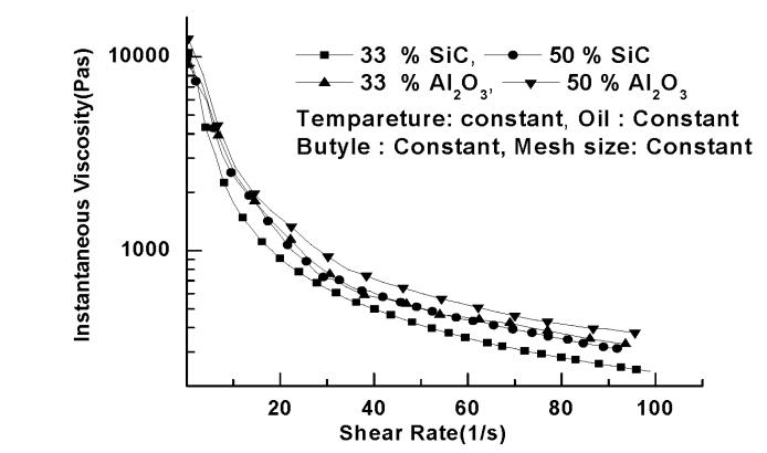 Effect of shear rate on viscosity by changing types of abrasives.(RheologicalTest)