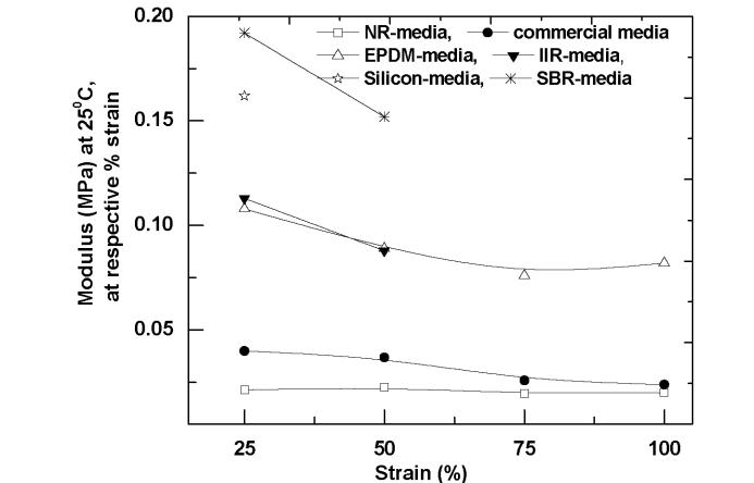 EffectofstrainonModulusat25 0Cforthecombinationof 0.68SiC0.2SBR0.12oilundertensilemode