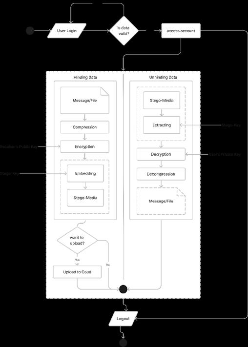 2.Afterlogin,theusercaneitherhidedataintoafile(usinga combinationofcryptographyandsteganography)orunhide datafromthehiddenfileusingtheproposedsystem.