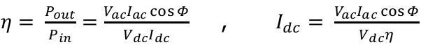 WhereIdcisthecurrentrequiredbytheinverterfromthe DCside(forexample,fromthecontroller)inordertobeable tokeeptheratedvoltageontheACside(forexampleonthe load).Vdcistheinputvoltagefortheinverterdeliveredby theDCside,forexamplebythecontroller.