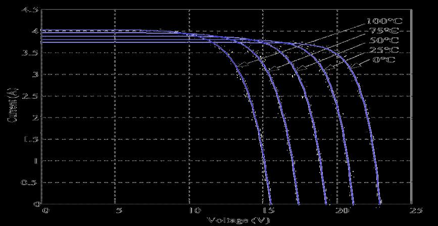 RadiationWhilefigure(4)showstheI-Vcharacteristiccurves of a photovoltaic cell at a constant solar radiation but differentambienttemperaturelevels