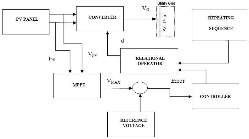 (MPPT)algorithmwhichis control mechanism isused for extracting maximum power from PV array irrespective of environmental conditions. This results in increased efficiencyofsolarmodules.Theproposedmodelforthisfor thisconverterisgiveninFigure(1)