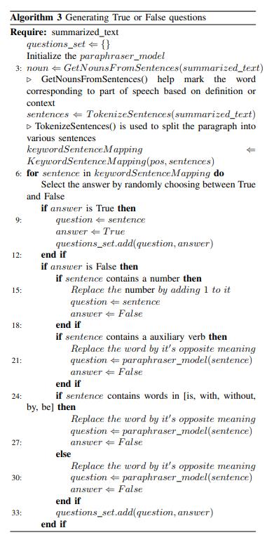 Thesystemtakestheinputtextfromtheuserandgenerates MCQs.TheMCQsthatwillbegeneratedareinthemixedform ofFillintheBlanks,TrueorFalseandMatchthefollowing.