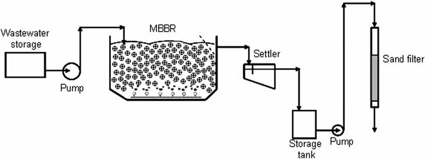 The Moving Bed Biofilm Reactor (MBBR) technology is an attached growth biological treatment process based on acontinuouslyoperating,non cloggingbiofilmreactorwith low head loss, a high specific Biofilm surface area, and norequirementforbackwashing.MBBRisoftendesignedas aerobic system. Samples will be collected from low income and high income society and its parameters will be evaluated prior to treatment. The proposed experimental set upforMovingBedBiofilmReactorcanbemadeasshown inFig.4.