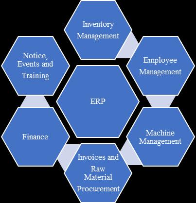 The secondary sector or the manufacturing sector plays a vital role in an economy. Industrialization is a symbol of economic growth. The share of secondary sector in the India’seconomyiscloseto25%.Thesectorisstillsubjected to low efficiency due to unnecessary manual work being involved. Automation delivers more efficiency and hence booststhegrowthofthissector.Automationhelpstomake the working of these industries more organized and minimizescostincurred.Automatingprovestobeextremely beneficial while performing recurring tasks and helps to streamline processes. An Enterprise Resource Planning softwareisdeployedtoautomateoperationalprocessesof any organization. In a conventional enterprise system, departmentsarequiteisolatedwithlittleinteractionamong themonareal timebasis.Dataneedstobefetchedfromthe relevant branch every now and then which makes the processverytimeconsumingandalsoleadstoduplicationof data. ERP software consists of a central database that incorporates packages such as financials, human assets, income control, and inventory control which allow interactionsamongthedepartments.ERPpackagealsotend to increase human productivity as it eases off burden and employees can rather focus on designing better business strategies. The applications of ERP can be extended and alignedwithmicro scaleindustries.TheERPsolutioncanbe used to digitalize day to day activities of a manufacturing