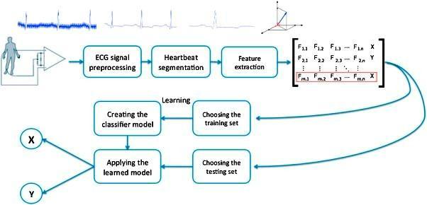 ThetaskofclassificationforECGsignalsisbroadlydivided into three parts: preprocessing, feature extraction, and classification.Fig.1.showsthetecticduringthiswork.