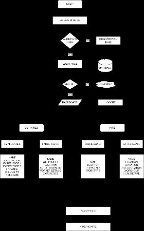 IthasaSplashscreen.IthasaRegistrationpageforuser.It hasaLoginpageforuser.Thereisan optionforLanguage selection.ThereisanoptionofGethired.Thereisanoption ofHire.ThereisanoptionofSmallscalework.Thereisan option of Large scale work. There is an option of Profile creation (CV) of four different types namely Get Hired Small Scale,Get Hired Large Scale, Hire Small Scale and Hire LargeScale.Wehaveconsidervarioustypesofskills. Googlemapshasbeenintegratedtoinputthelocationofthe registered user. User can search for the required occupation byselecting an occupation from the dropdown button where all the considered skillsets appear. The user from the Get Hired has the freedom of accepting or rejecting the job request of the user from Hire and vice versa.A14digithealthidisbeingtakenfrom theusersof Get Hired section. We will consider software quality like security, scalability etc. Accomodation and working hours ofworkersandDurationoftheprojectisalsoensured.