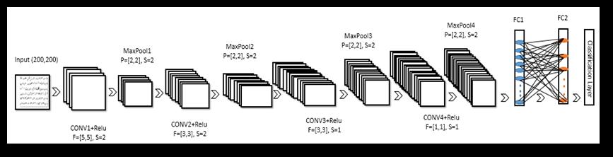 The network architecture that was used in this research consists of 4 convolutional layers, 4 pooling layers, and 2 FullyConnectedLayer(FC).[1]Eachconvolutionallayeris followedbyaBatchNormalizationLayer(BN)andRelulayer. ThisnetworkalsoincludesaSoftmaxlayer,whichisusedfor Classificationproblems.