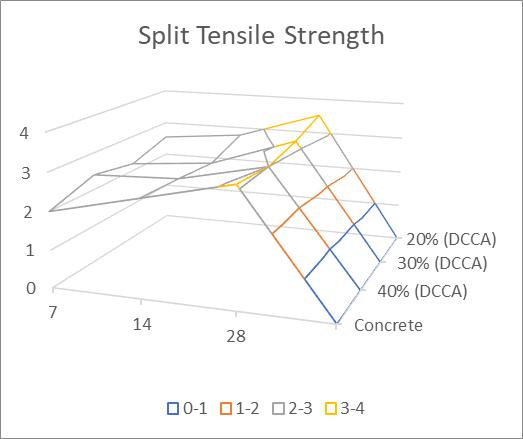 The tensile strength of concrete has been one of the fundamentalessentialsignificantqualities.Splittingtensile testsonconcretecylinderisatechniquetoassessthetensile capacityoftheconcrete.Theconcreteisquiterelativelysoft owing to its elastic behavior and is not anticipated to withstand the direct stress. The cement forms fractures whenexposedtotensilepressures.Thus,itisimportantto estimatethecapacityoftheconcretetocalculatetheloadat whereby the concrete components may fracture. Splitting tensiletestsonconcretespecimenisatesttodiscoverthe tensile capacity of the concrete. Split tensile strength test wasperformedbyutilizingtheproceduregivenbyIS5816 1999.Moldsof150mm×300mmwereutilizedforthistest.