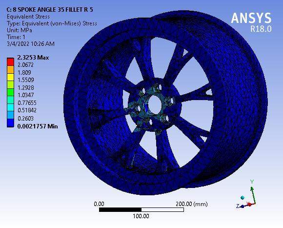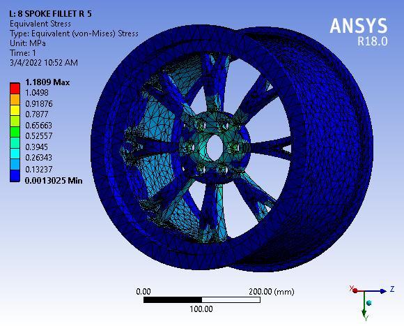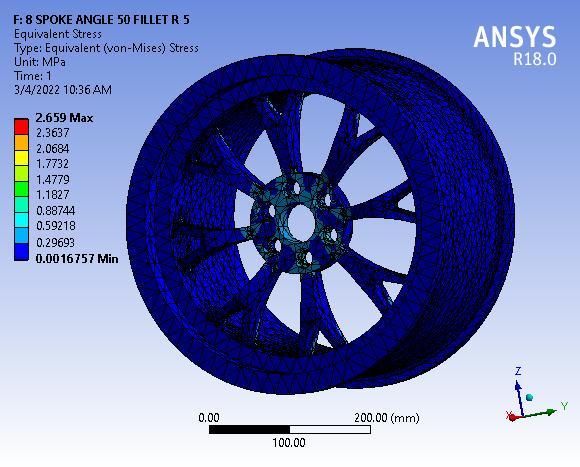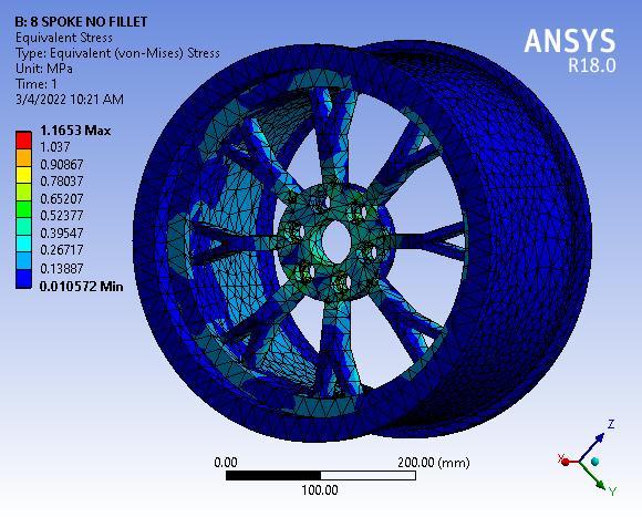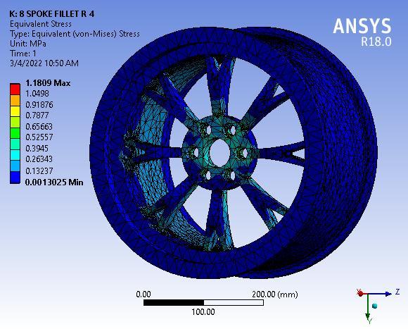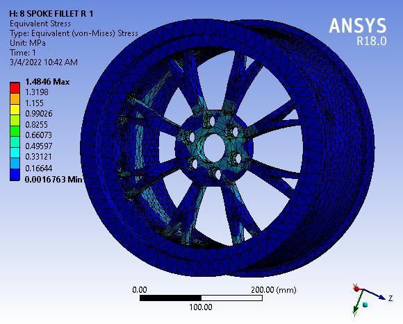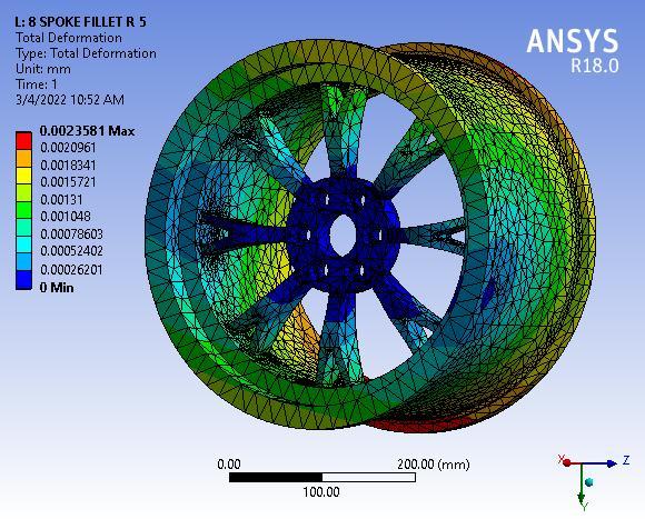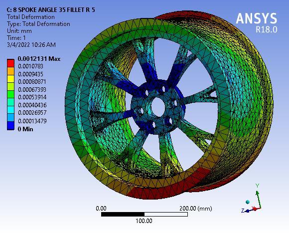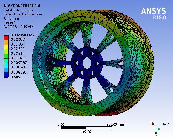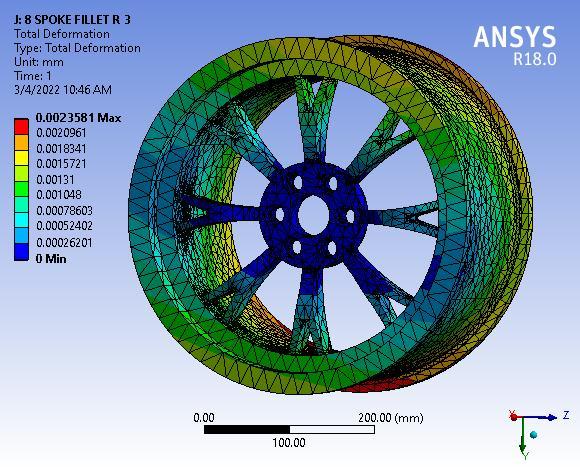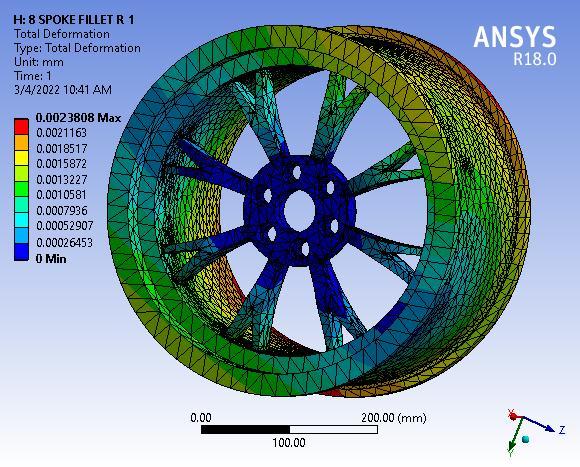 Fig 3: TotalDeformationof8SpokeAlloywheelwithNo filletradius