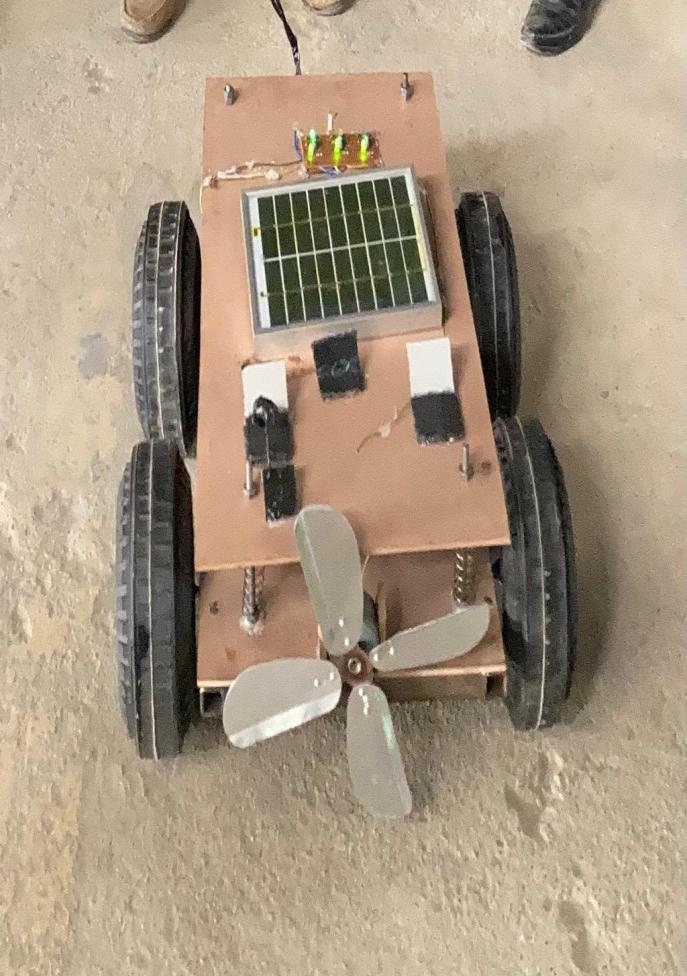 Thehybridsystem,whichincludesawindturbinewithsolarpanels,wasdesignedandinstalledtogenerateelectricity.The hybridmodelsystemisarenewableenergysystemthataidsinenergyconservationbyreducingvehiclefuelconsumption. Usingthewindtopoweracarincreasingthepowersenttothebatteryandreducingthetimebetweengasrefuelingand electriccharging.