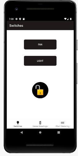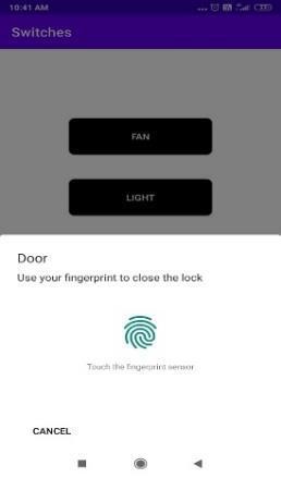 So,whentheuserpressesonthelockiconbutton,theapp will ask for the user’s fingerprint or face ID (whichever is authorized) to open the lock. If the fingerprint / face ID matches,thelockwillopen,andtheappwill popupatext showing lock is opened as well as the lock icon will be changed to open state. All this data will be stored in the Firebasewheneverahomeapplianceisbeingoperated.The esp32isconnectedtotheappthroughtheclouddatabaseas wellanditoperatesthelockaccordingly.