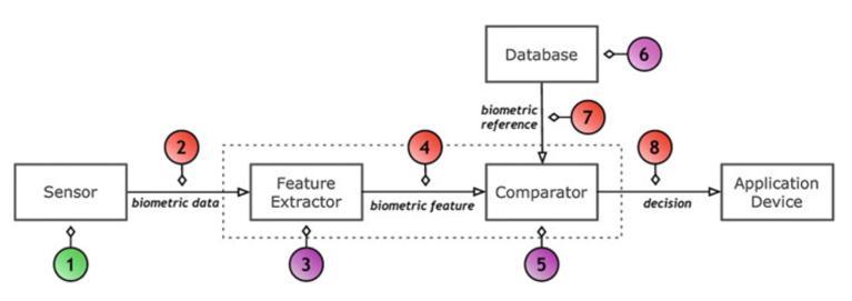 Fig. 2: Possibleattackpointsinagenericbiometric system