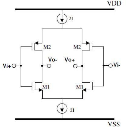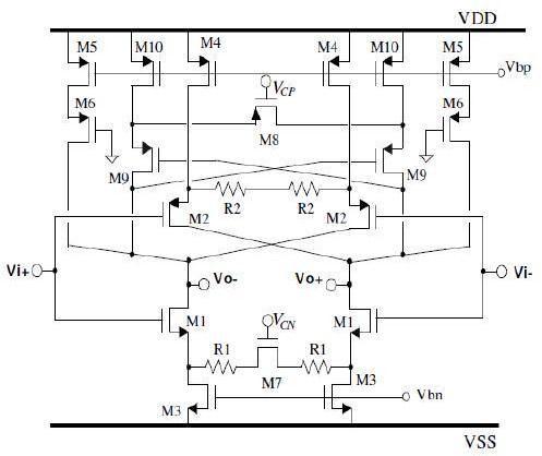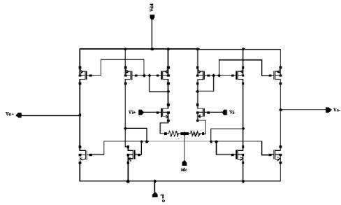 TheproposedOTAisshownbelow.sourcedegeneration and cross couple cancellation are employed to achieve a highlinearity