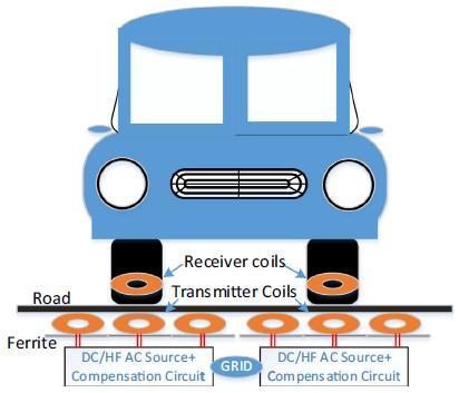 The transportation industry is a major contributor to global climate change and CO2 emissions [1]. With transportation accountingforalmost60%ofglobaloilusagein2017,thedemandforacleanalternativeisurgent[2].Electricvehicles(EVs) areacriticalcomponentinthetransitiontoacleanenergycivilization[3].EVshavebeenadvancedtremendouslyintermsof performanceandrange.Variousmodelsarecommerciallyavailableonthecurrentautomotivemarket. Witha risingnumber of EVs on the road, determining how to charge them properly and efficiently remains a challenge, having a substantial influence on power networks [4], [5]. Almost majority of the existing EVs are charged by electric cables. Cables must be physically linked to the EVs for charging, whether at home or on the roadway. These strong connections might be quite dangerous,especiallyininclementweather.Furthermore,theymayproducesparkingwhenpluggedinandunplugged,which severelylimitstheusageofEVsinsomesituations,suchasnearpetrolstationsandairports.Wirelesscharging,whichismore versatile and convenient, has gotten a lot of attention. Several firms, including Tesla, BMW, and Nissan, have begun to build wirelesslychargedelectricvehiclesthatdonotrequirecumbersomeconnections.Thewireless(inductive)link,ratherthana physical cable connection, successfully prevents sparking. Wireless charging also gives up new opportunities for dynamic charging,suchaschargingwhiledriving.