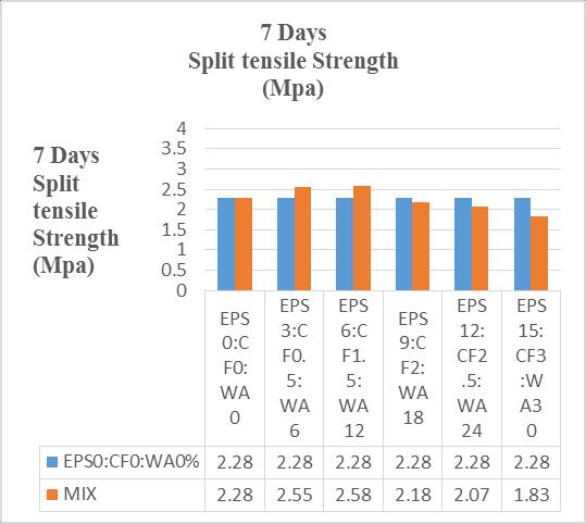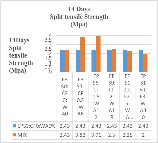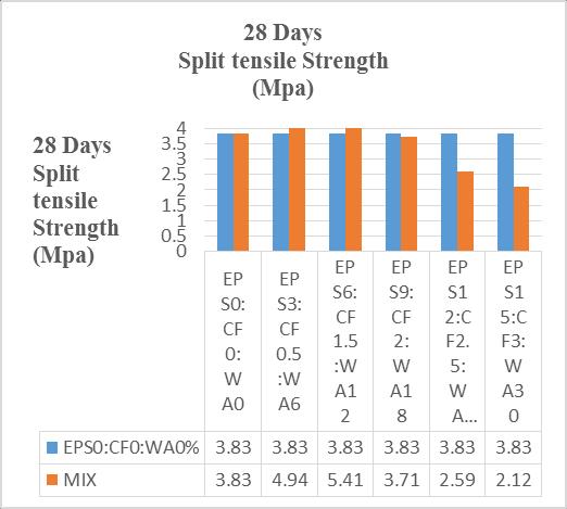 • Thehighestvalueoftensilestrengthwasobtained atEPS6:CF1.5:WA12%replacementwhichis5.2Mpa.