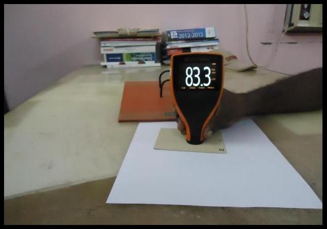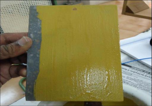 The thickness of coating was measured using a handy digital display thickness measuring Elcometer 456 as shown in Figure 4 Upon each coated surface, 6 measurements are averaged and the average values are reported in Table 3 This coating thickness is called dry filmthickness(dft)andwasgiveninmicrons.Theobtained values lie in the range of 210µm to 237µm.The coatings