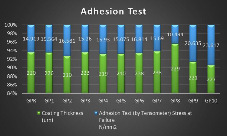 GP8, GP9 and GP10 have performed excellently under salt spray test conducted for a period of 60 days(1400hours).Theperformance was attributed to the strongadhesion of betweentheplateandthe coating.