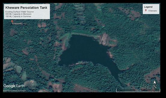 The main source of water in the Village of Kheware is the percolation tank located in the Village of a capacity of approximately400MLinMonsoons.DuetoEvaporationand percolationlosses,thecapacityofthistankgoesdowntoup to150MLinthedriestmonthsofsummer