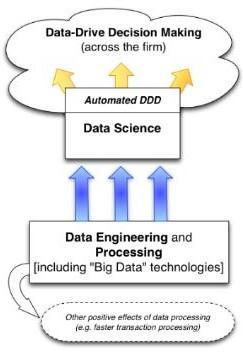 Fig.2. Data Scienceinthecontextofvariousdata relatedprocesses theyusedatatogowithchoicesacrosstheorganization.Theyshowgenuinelythatwhenanorganizationrunsdata,itcreatesa great deal andcontrolsa tonoflikelydisarray.Also,the thing thatmatters islittle: thesinglestandard deviationinthe DDD scaleisrelatedtoa4 6%incrementunderway.DDDisadditionallyconnectedwithbetteryieldsonproducts,returnsonvalue, utilizationofmerchandise,andmarketesteem;and the relationship is by all accounts the reason..[15]Our twocontextual investigationsrepresenttwouniquesortsofchoices: (1)choiceswhere”discoveries”shouldbemadeinsidethedata,and(2)repeateddecisions,especiallyonalargescale,inorder tomakeinformeddecisionsfromevenaslightincreaseindecision makingaccuracybasedondataanalysis.13]TheWal Mart exampleaboveillustratesatype1problem:LindaDillmanmightwanttogetdatathat will assist Wal Martwithplanningfor theup and comingtempest Frances. Our stirmodel showsa Type 2 DDD issue. Ahuge media communica tionsorganization might have countless clients, each with its own contradicting applicant. Tens of millions of customers have contracts that expire each month, so each one has agrowing risk of revolt in the near future. If we can improve ourrating ability, to a particularcustomer,andhowmuchitcanbenefitustofocusonit,wecanreaphugebenefitsbyusingthis ability for millions of customers in the community.[15]