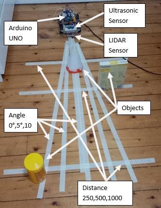 The literature review indicates that using ultrasonic and LIDAR sensors for distance measurement is more advantageousthanutilisingeithersensoralone.Therefore, thisstudyaimstooptimisethedistancemeasurementofan AVusinganultrasonicsensor(HC SR04)andLIDARsensor (VL53L0X)foreducationpurposes.Themainobjectivesof this research are 1) To experimentally find an effective indooroperatingrangeofanultrasonicsensorandLIDAR sensor; 2) To experimentally find the effect of an angle, distanceandobjectshapesontheerrorrateanddetection rate of an ultrasonic sensor and LIDAR sensor. The study intends to contribute to the literature on optimising the distancemeasurementofanAVusingultrasonicandLIDAR sensors.