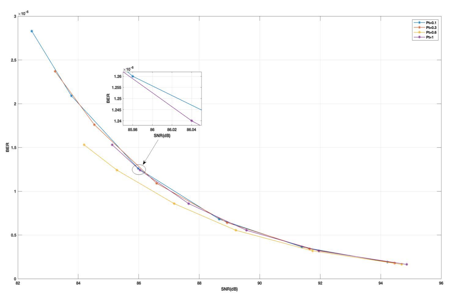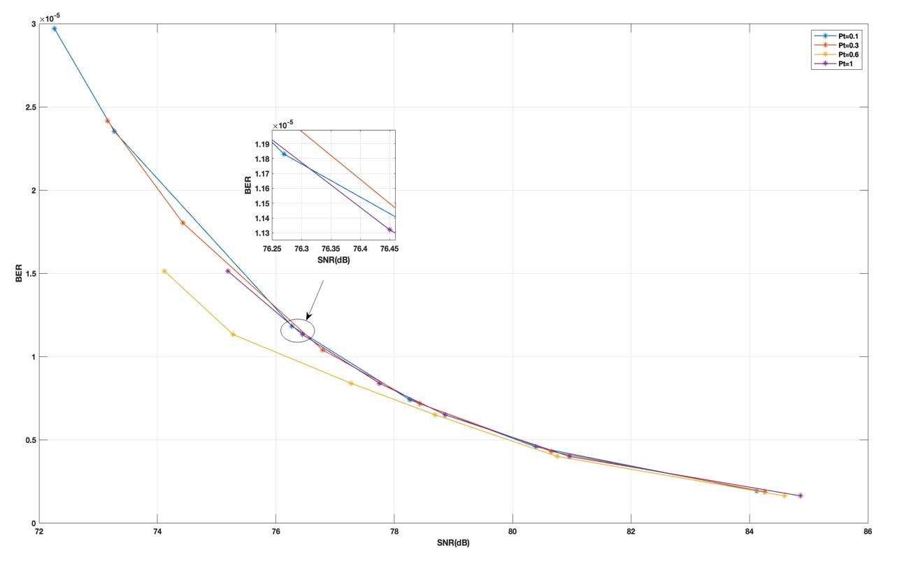 SNR1 BER1 SNR2 BER2 SNR3 BER3 SNR4 BER4 84.12 1.93*10 6 84.26 1.87*10 6 84.59 1.73*10 6 84.86 1.63*10 6 80.39 4.57*10 6 80.65 4.304*10 6 80.75 4.206*10 6 80.96 4.001*10 6 78.26 7.4*10 6 78.43 7.167*10 6 78.69 6.76*10 6 78.86 6.5*10 6 76.27 11.83*10 6 76.79 10.4*10 6 77.27 9.37*10 6 77.75 8.394*10 6 73.27 23.53*10 6 74.43 18.02*10 6 75.28 14.8*10 6 76.45 11.32*10 6 72.26 29.7*10 6 73.16 24.15*10 6 74.12 19.36*10 6 75.19 15.13*10 6