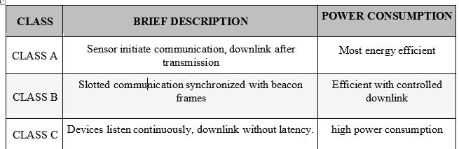 Table 2: LoRaWANClassCharacteristics