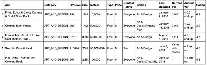 5. DroppedunnecessarycolumnslikeāAppandā,āLastUpdatedā,āCurrentVersionā,andāAndroid Versionā.