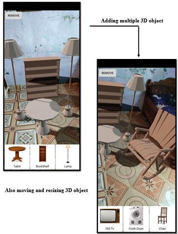 Theproposedsystemuses Marker less AugmentedRealityas a basis forenhancing userexperienceandfora better perception of objects. Marker less tracing is a technique of location tracking the confirmation of location anddirectionofanelementwithinitssurrounding.Thisis a crucial characteristic in virtual reality (VR) and augmented reality (AR), making it feasible to notice the line of sight and perception of the client permitting for the digitalatmospheretorespondappropriatelyortheinstallation of augmented reality content in agreement with real[1]. While marker based techniques of motion tracking utilize certain optical markers, marker less positional trackingdoesnotdemandthem,makingitamorefeasible technique. Italsorefuses thedemand fora processed environment in which fiducial markers are placed beforehand, for example. However, a marker less viewpoint permits the client to roam ina room or a new ecosystem and still receive positional feedback, extending the pertinency range[5]. Thefundamental assumption of theinitiatedsystemistolaminatevirtual3Dprototypesontopof actualelemensusingamobilephonecamera.Initially,the development was started with Marker based approach becauseofthelackofsupportforMarker lessaugmented reality. Recently, Google notified its ArCore platform that would permit programmers to code Marker less AR products so wedevelopedourmobile application around androidoperatingsystemmainlybecauseofitsaccessibility, noticability, dependence rate, and quickness. The devel opmentenvironmentincluded Unity Game Engine, Java Programming Language, Android Studio IDE and wecurrentlyonlysupportandroiddevices.