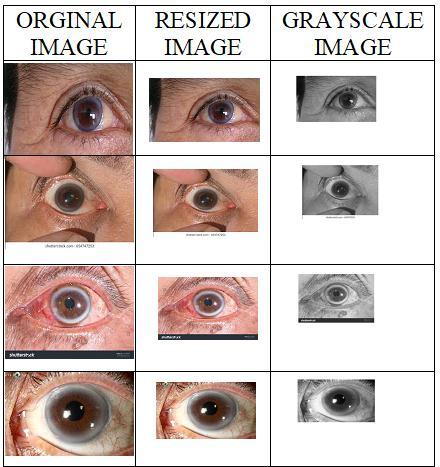 Theoriginalimageoftheirisisfirstresized(227X227and 224X224)byusingtheimagebatchprocessingapp,thenthe resized images are converted from RGB image to the grayscaleimage,thus pre processingisdone.Theimageis