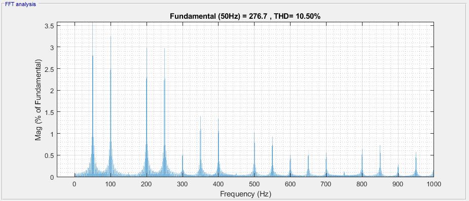 The%TotalHarmonicDistortion(THD)ofloadcurrentinthebasesystemisaround10.50%asdepictedinfigure12.