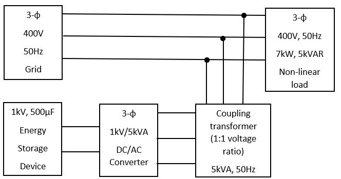 The proposed system is shown in figure 1, comprises of a VSC, a DC source, a coupling transformer in parallel to the distributionnetwork.Thethree phasegridsupplyingthepowerwith400V,50Hzisasfollows.