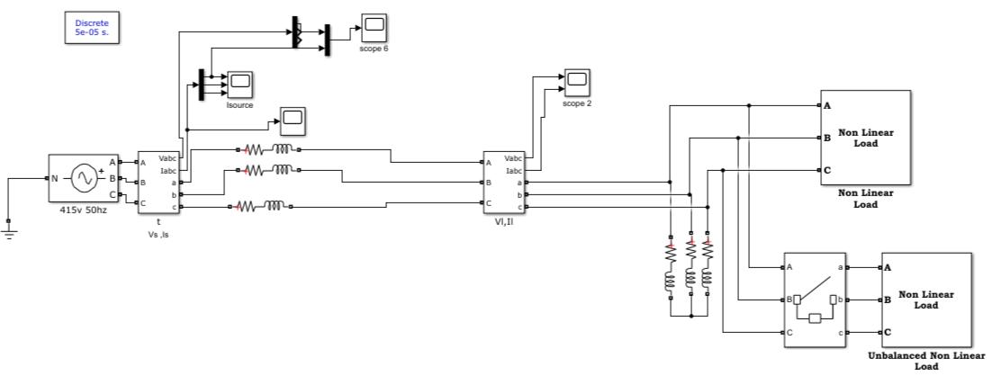 Parameters Values SupplyVoltage 415V Frequency 50Hz LoadParameters R=30Ω,L=70mH Non Linearloadparameters R=60Ω,L=0.15mH