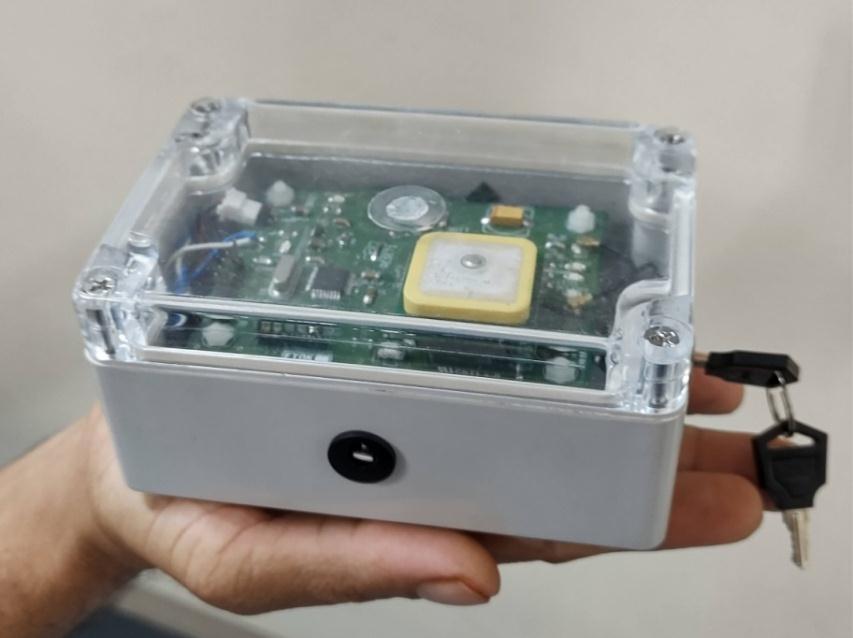 AccordingtoFig.3andFig.4thesystemhasbeenfabricatedonacustomdesignedsingleprintedcircuitboard,whichhasbeen assembledonwithelectroniccomponentsin house.IthasbeenenclosedinaIP65gradeboxtopreventdustandmoisture ingress.TheLithiumIonbatteryof3.7V,5000mAhhasbeenplacejustunderthecircuitboard.Theunithasbeenprovidedwith aDCjackthatiscompatiblewith9 12VDC,1.5ADCadaptorforchargingofthebattery.Theunithasalsobeenprovidedwitha key switchinsteadofordinaryon/offswitchsothatunitshallnotbemaliciouslyturnedoffbyunauthorizedpersons.Only stationin chargeoftherespectiveunitsfromwheretheconsignmenthasbeendispatchedfromwouldbeholdingtheidentical keysforthesystem.