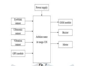 Theeye flickersensorworkwhentheeyelidareclose.Itisrecognizedbytheinfraredbeams.Thespanofasquintison the normal 100 150 millisecondsasindicated by UCL scientist and between 100 400ms asper theHarvard Databaseof UsefulBiologicalNumbers.Terminationsinexcessof1000mswerecharacterizedasminiaturerests.Thissensormodule comprisesoftheconsiderationsquintsensoroutline,theIRsensorandahand off.Thevibratorgadgetisassociatedwith theconsiderationsquintsensoroutlinewhichistobewornbythemainthrust.Thisvibratorvibratesatwhateverpointa mishap happens or the main thrust nods off. The module comprises of the IR transmitter which sends the IR beams towards the eyes and an IR beneficiary which gets the reflected beams when the eyes are shut. The transfer gives the additionalcurrent expected bythismoduleandhenceforthislikewiseassociatedwiththeArduinoNanomicrocontroller board.