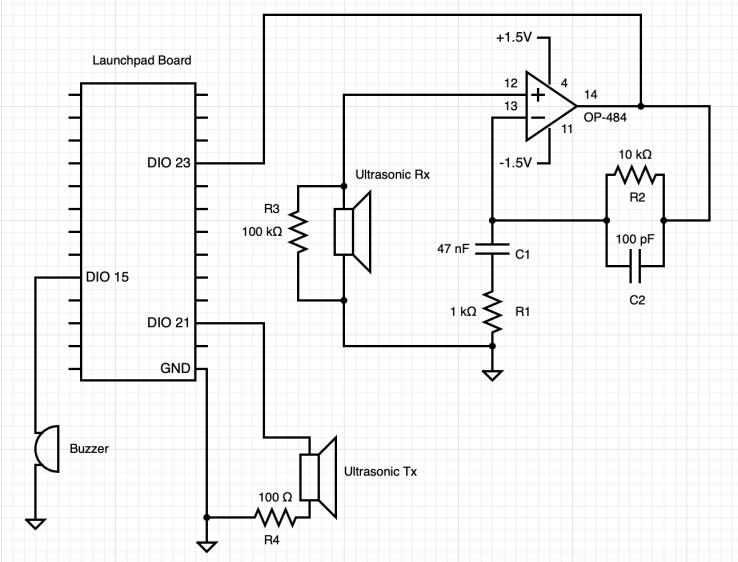 Instead of using an independent microcontroller chip, I elected to utilize a Launchpad development kit board (which incorporates a microcontroller chip) because it has numerous general input/output pins that make it easier to interface with. The device also includes built in radio frequency communication capabilities [3], which I needed for my project [9]. It would have been necessary to construct a separate radio antenna and receiver without this built in capabilities. Although this would have been possible, I chose to abstract this componentand use existing RF technology sothatIcould concentrate on the ultrasonic capabilities and microcontrollerprogramming.