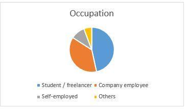 46.6% of the respondents were students/freelancers, 37.5% of the respondents were companyemployees,10.2%self employedand5.7%were others.