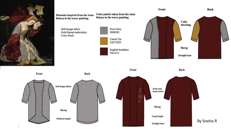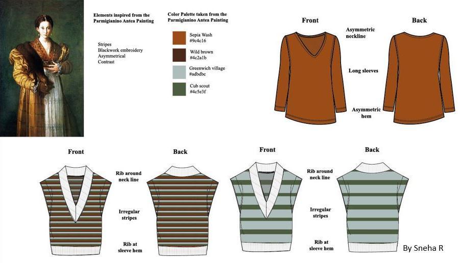 TodevelopaknitwearcollectioninspiredfromMaximalism and Renaissance concepts. The initial sampling of the garmentswillbedoneinCLO3Dsoftware.Wederivedthe conceptfromthecustomerstudyweconducted.Wetookan inspirationwhichareretabletothechosenconcept.Thenwe have created concept board, inspiration board and mood board.Wecarriedoutdesignexplorationprocessandfabric sampling.Fromthedesignexplorationprocess,wechosethe final garments and created initial samples in CLO3D software