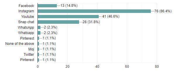 Majority of the respondents preferred Instagram and Youtube, and few of the respondents preferredSnapchatandFacebook.