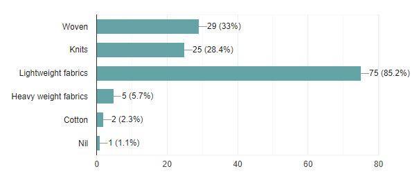 Lightweight fabrics is the popular fabric choiceselectedbytherespondents.
