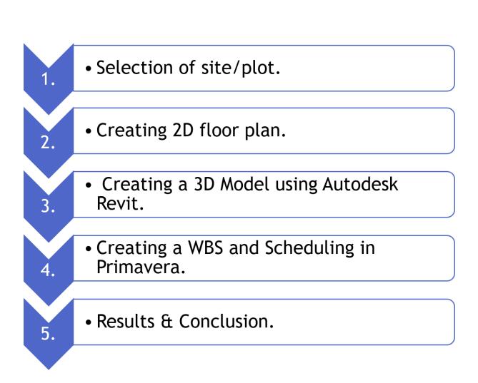 The following project deals with the planning, modelling, quantity estimation and scheduling of a multi storey residential building using advance civil engineering applicationas BIM whichincludessoftwarelikeAutoCAD, Autodesk REVIT, Primavera and Microsoft Excel Spreadsheets. Project starts with planning of the building usingAutoCAD,themodellingandquantityestimationwill becarriedoutwiththehelpofAutodeskREVITandfinally theschedulingwillbedonebyusingPrimavera