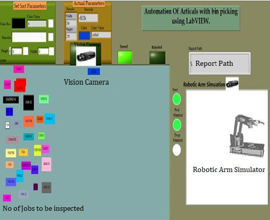 In Fig 2, Number of jobs are stacked at left side with differentcolorsandbarcodes.Roboticarmisusedtopick different jobs and inspect its dimensions under vision camera. After inspection it decides whether the job is acceptedorrejected onthe basisofrequired dimensions and places it accordingly as Fig 3, shows the saved path result in form of excel sheet Parameter selection also available in Set Sort Parameters such that user can select any parameter and work pieces will be sorted accordingtoselectedparameters.